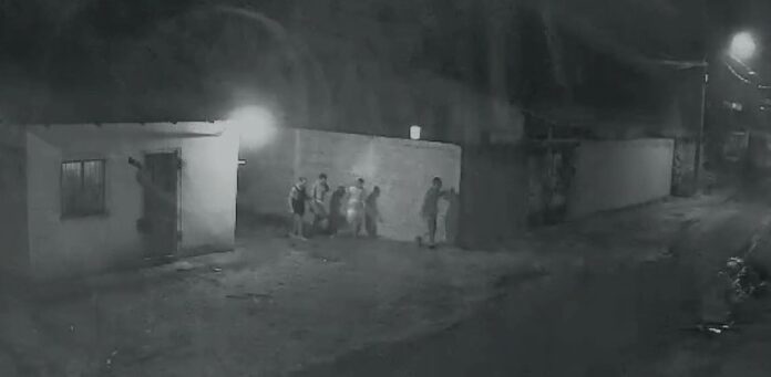 As gravações, feitas por câmeras instaladas em residências da região, mostram os suspeitos caminhando em grupo pelas vias do distrito.