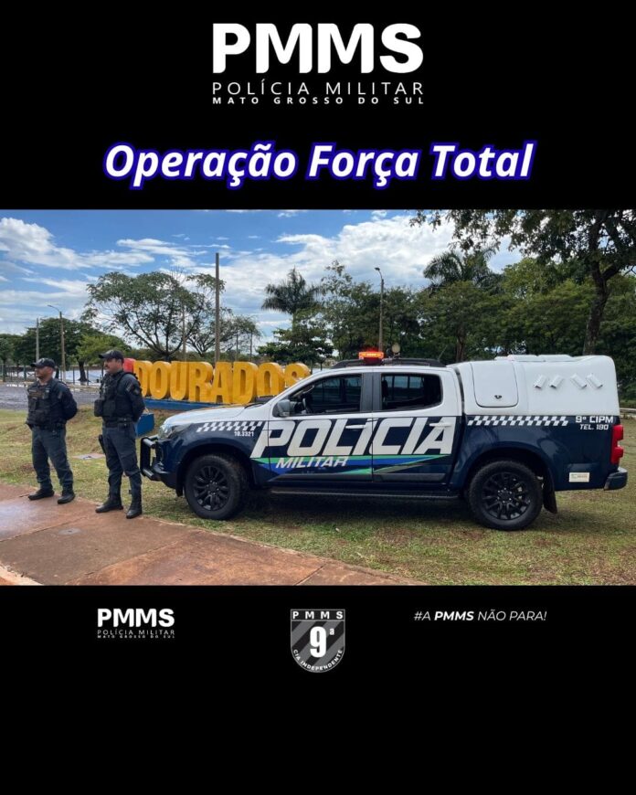 A Polícia Militar do Estado de Mato Grosso do Sul, por meio da 9ª Companhia Independente de Polícia Militar de Dourados, participa da Operação Força Total, intensificando o policiamento ostensivo e preventivo em toda a Região Oeste de Dourados.