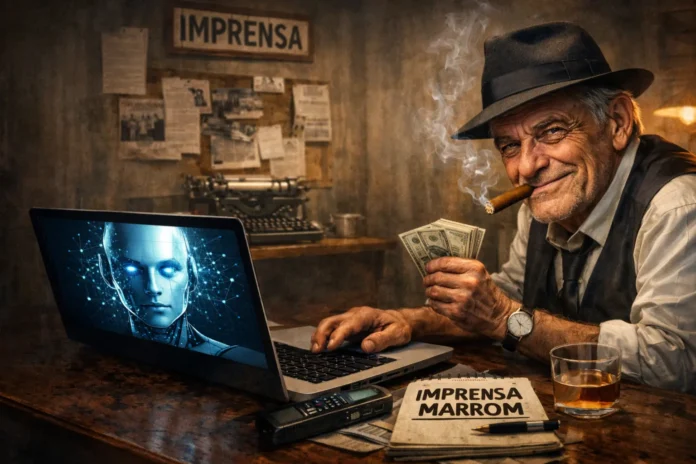 Nunca foi tão confortável praticar a velha picaretagem sob verniz tecnológico. Com um domínio barato, meia dúzia de prompts e nenhum escrúpulo, surgem “portais de notícias” que não informam: intimidam. Não investigam: achacam. Não publicam reportagem: emitem notas. Sempre em nome do “interesse público”. Sempre com alvo bem definido — o empresariado desavisado e, principalmente, quem segura a chave dos cofres públicos.