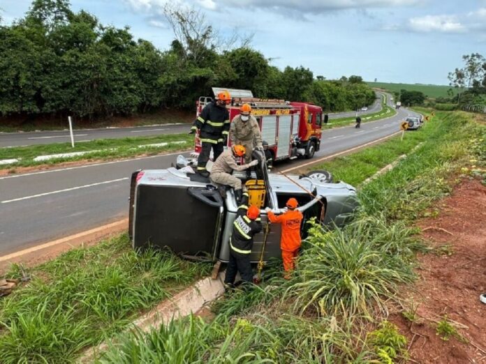 Uma mulher ainda não identificada ficou ferida após uma caminhonete Toyota Hilux capotar na manhã desta terça-feira (23), na rodovia MS-134, em Batayporã.