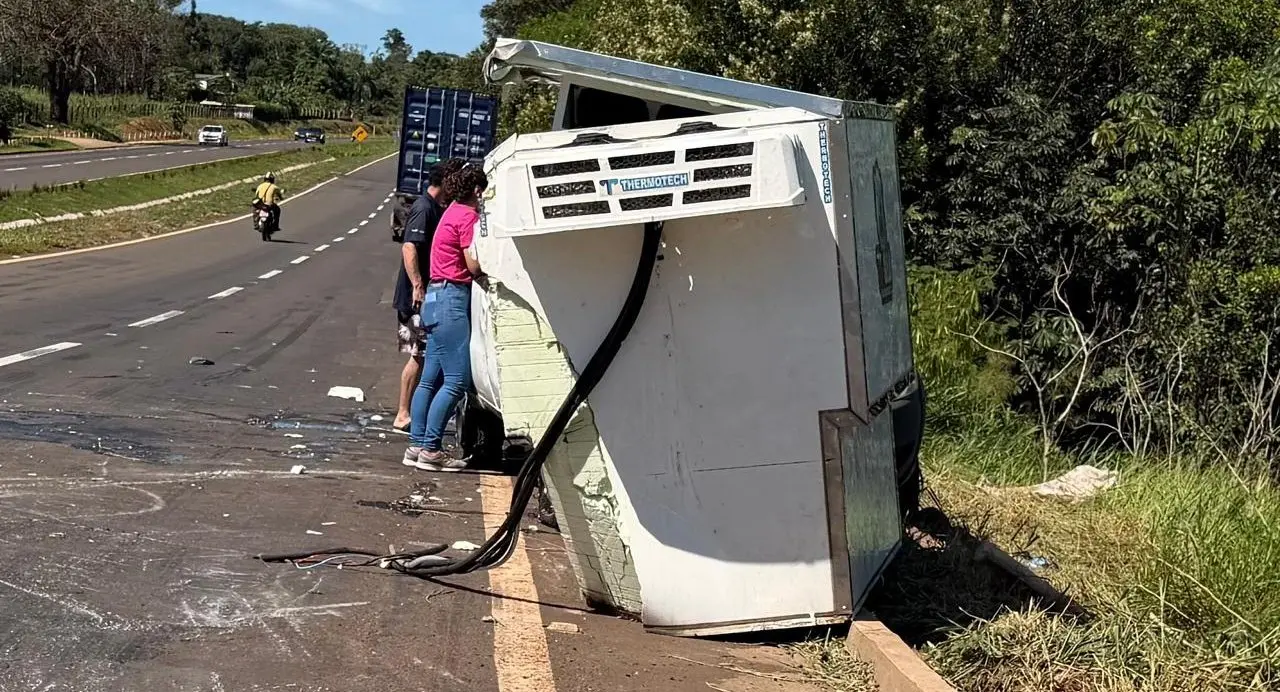 Com o impacto, o veículo foi puxado, saiu da pista e acabou capotando às margens da rodovia. Apesar da gravidade do acidente, o carro parou antes de cair em uma ribanceira.