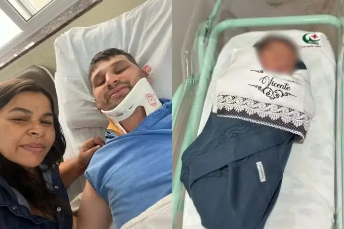“Estávamos todos de boa no caminho, começamos a mandar mensagens para alguns familiares e amigos próximos dizendo que talvez o Vicente nasceria naquele dia. Estavam todos calmos e felizes, quando, de repente, numa curva meu esposo perdeu o controle da direção. O carro foi para contramão, voltou pra pista correta e depois saiu novamente pra contramão e capotamos. Nesse momento eu só gritei: ‘Meu Deus’, segurei firme na porta, fechei os olhos e só escutei o barulho da pancada”, contou Luciana.