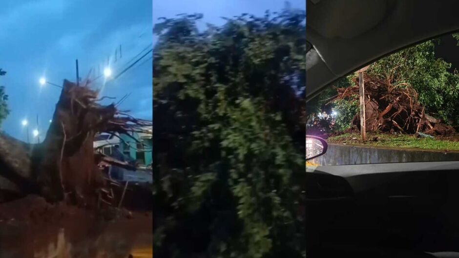 Uma árvore de grande porte caiu sobre um veículo que estava estacionado em uma praça no bairro Coophasul, em Campo Grande, durante o forte temporal registrado na tarde desta sexta-feira (20). O automóvel pertence a uma moradora da região.