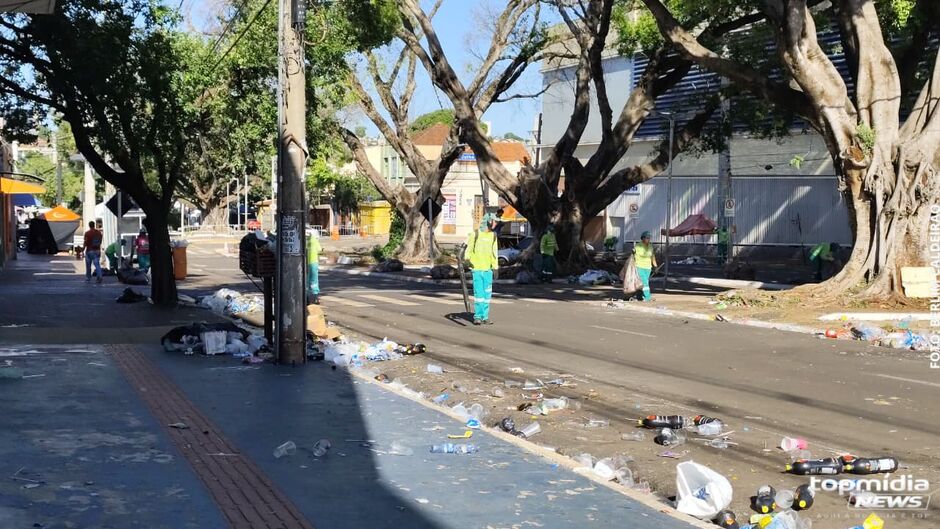 InícioPolíciaAvenida Mato Grosso amanhece coberta de lixo após Carnaval em Campo Grande