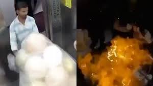 Segundo o jornal Times of India, as imagens mostram um funcionário de uma loja entrando no elevador com balões, junto de uma estudante de 21 anos. Em seguida, os balões explodem, lançando chamas. Na sequência, os dois saem correndo do local.