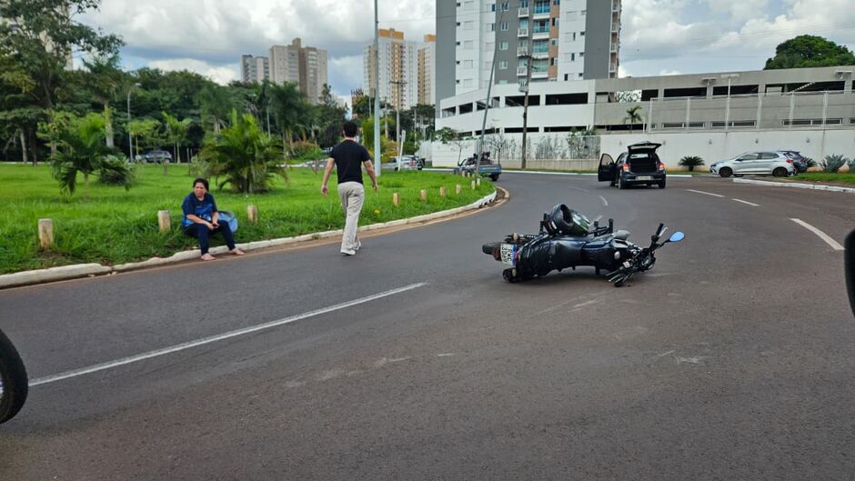 Um acidente envolvendo uma motocicleta e um carro foi registrado na tarde desta segunda-feira (20), na rotatória da Avenida Rachid Neder, em Campo Grande.