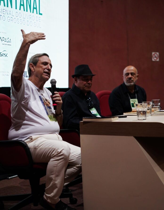 O assunto foi abordado pelo jornalista e escritor Bosco Martins na Roda de Conversa realizada na Bienal do Pantanal que terminou neste fim de semana, no Centro de Convenções Rubens Gil de Camilo. Em palestra, sobre o tema Territórios, Culturas e Geopolítica, com a participação do escritor James Jorge Barbosa Flores (Jaminho) e mediação do músico e escritor Rodrigo Teixeira, Bosco apresentou a edição impressa do seu livro Diálogos do Ócio, que traz um inventário de décadas de sua amizade com Manoel de Barros, publicada pela Editora da Universidade Federal de Mato Grosso do Sul (UFMS) e revelou achado de anotações de versos inéditos do poeta. O escritor jardinense Jaminho destacou algumas de suas principais obras, como a Onça Pitoca, sua mais recente publicação.