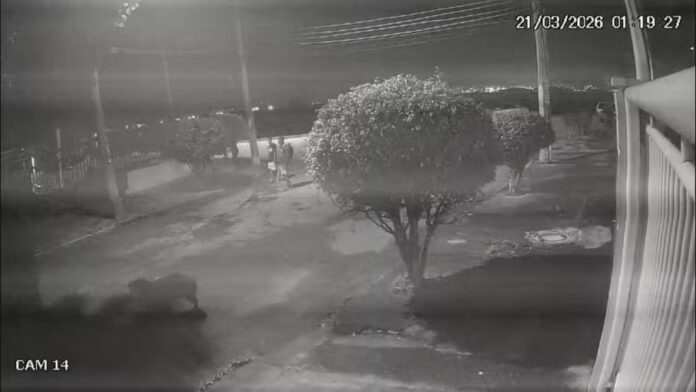 As imagens mostram a capivara caminhando pela rua por volta de 1h19, quando os homens surgem logo atrás carregando pedaços de pau.