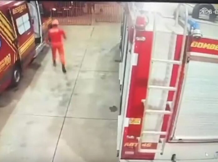 Imagens de câmeras de segurança registraram o momento em que a família chega desesperada ao quartel e a reação imediata dos bombeiros, que correram para prestar atendimento emergencial.