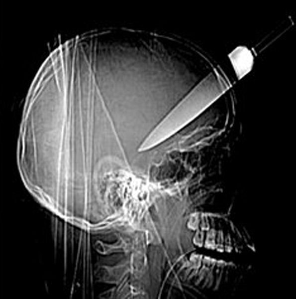 Ainda conforme o relato, a criança de 4 anos teria arremessado a faca para o alto e o objeto acabou caindo e perfurando a testa da irmã mais velha, com profundidade aproximada de 4 milímetros.