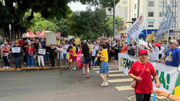 Movimentos sociais e representantes de partidos de esquerda realizaram, na manhã deste domingo (14), uma manifestação no centro de Campo Grande contra a aprovação do chamado “PL da Dosimetria”, projeto aprovado na última quarta-feira (10) pela Câmara dos Deputados.