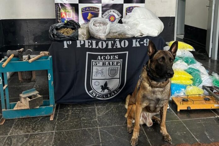 Cão da PM para em casa suspeita e acha 36 kg de maconha e 31 kg de cocaína