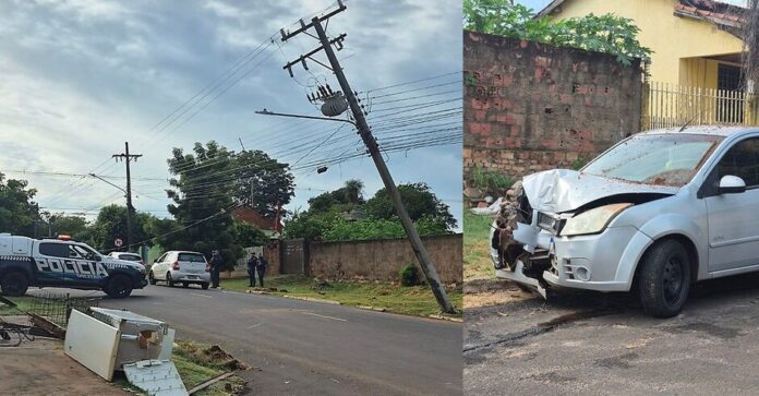 Um acidente ocorrido na madrugada desta segunda-feira (23) mobilizou equipes técnicas e provocou a interrupção no fornecimento de energia elétrica em Aquidauana. Um veículo bateu violentamente contra a base de um poste no cruzamento das ruas Giovani Toscano de Brito e Duque de Caxias, causando sérios danos à estrutura.