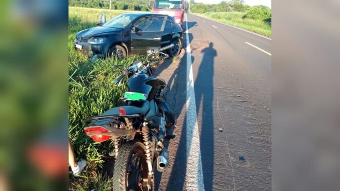 Um carro capotou após se envolver em um acidente com uma motocicleta na manhã deste domingo (15), na BR-376, nas proximidades de um pesqueiro em Ivinhema. Pelo menos duas pessoas ficaram feridas e precisaram de atendimento.