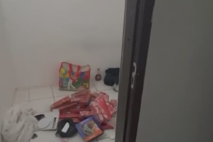 No local, os policiais encontraram cerca de 30 quilos de maconha. A droga estava dividida em 26 tabletes prensados e pronta para distribuição. Também foram apreendidos celulares, balanças de precisão, pinos plásticos usados para embalar cocaína, sacos plásticos e outros materiais comumente associados ao comércio de entorpecentes.