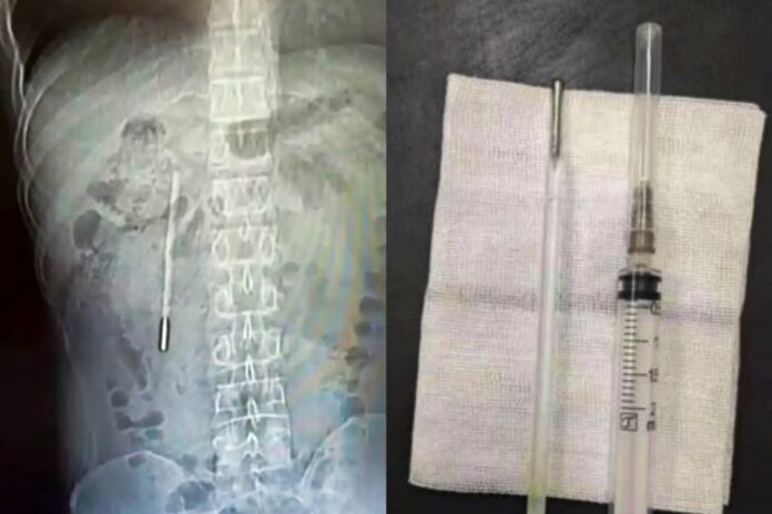 Um chinês de 32 anos passou por uma cirurgia após sentir dores no estômago e descobrir que um termômetro de mercúrio, que havia engolido há 20 anos, ainda estava dentro dele.