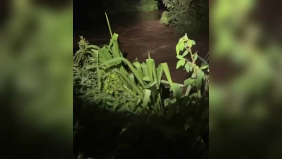 Com o transbordamento do Rio do Peixe, o nível da água subiu significativamente, provocando alagamentos e representando risco à segurança de motoristas que utilizam a via.