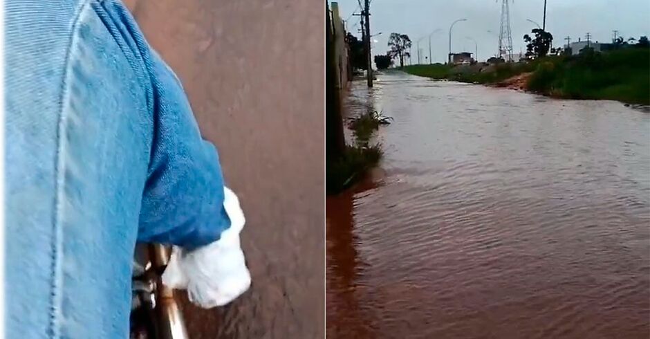 Em um vídeo encaminhado ao Top Mídia News, um morador relata as dificuldades enfrentadas ao retornar do trabalho de motocicleta, destacando o perigo ao tentar atravessar o trecho tomado pela água. “Achei que não ia conseguir passar”, afirma durante a gravação.