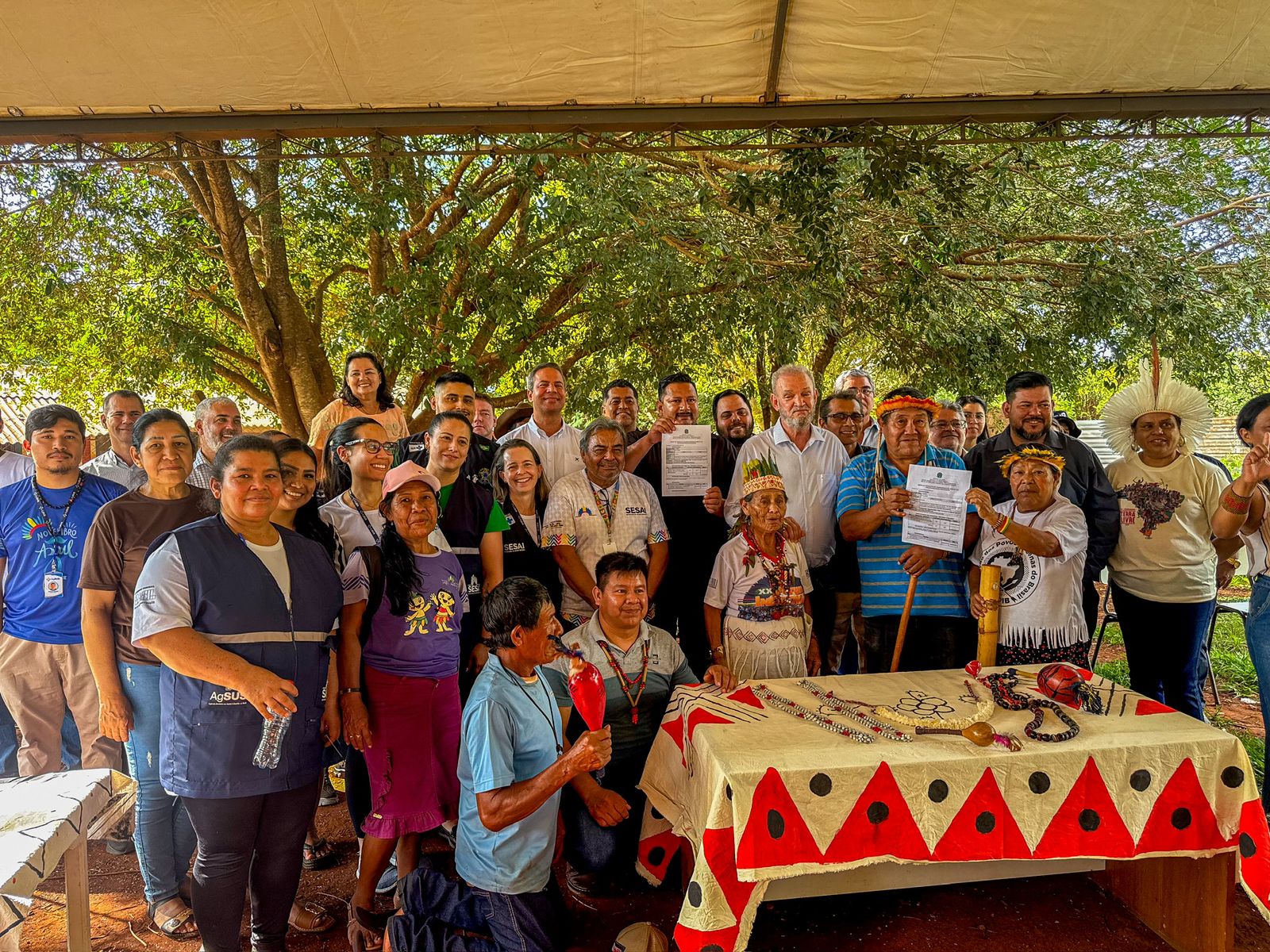 Autoridades, lideranças e comunidade celebram início de construção das Unidades Básicas de Saúde na Reserva Indígena de Dourados.