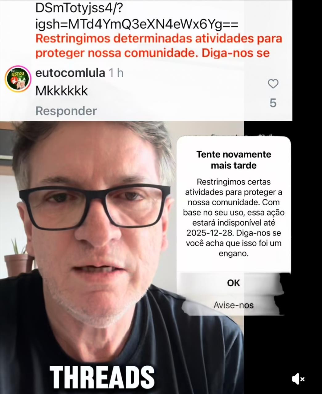 No meu caso houve denúncia em massa + algoritmo cego = meu silenciamento temporário.