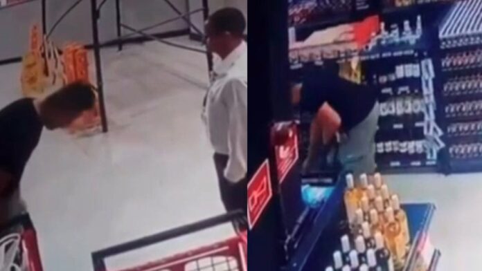 Após finalizar a compra, ele é abordado por um segurança no corredor do shopping. Ao retornar com o funcionário, o delegado retira o produto do bolso e o entrega ao vigilante, que realiza uma revista.