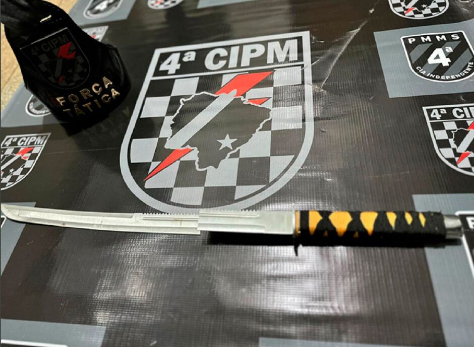 De acordo com informações da Polícia Militar, a equipe foi acionada para atender a ocorrência e, ao chegar ao local, encontrou a vítima com um ferimento no dedo, provocado pela arma branca. O autor da agressão foi localizado em sua residência, ainda de posse da katana utilizada no ataque.