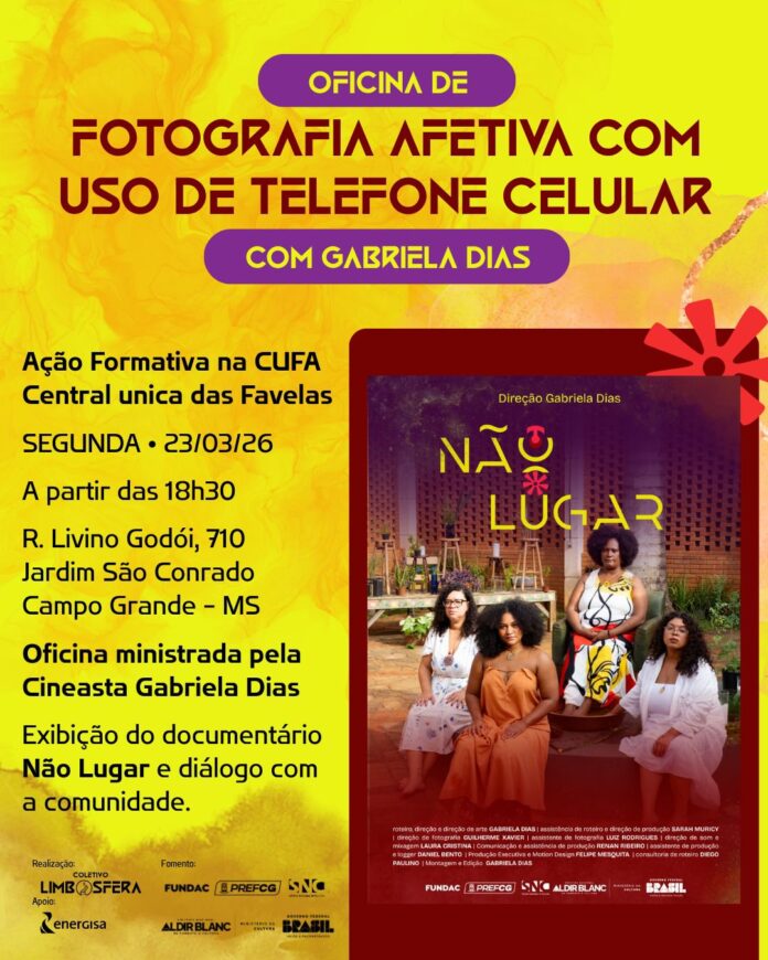 Depois de uma avant-première para convidados e apoiadores, no último sábado (21.03), em Campo Grande, o filme “Não Lugar” faz, nesta segunda-feira (23.03.26) sua primeira exibição pública. Será na Central Única das Favelas (CUFA), na Ruan Livino Godoy, 710, Jardim São Conrado, na capital sul-mato-grossense.