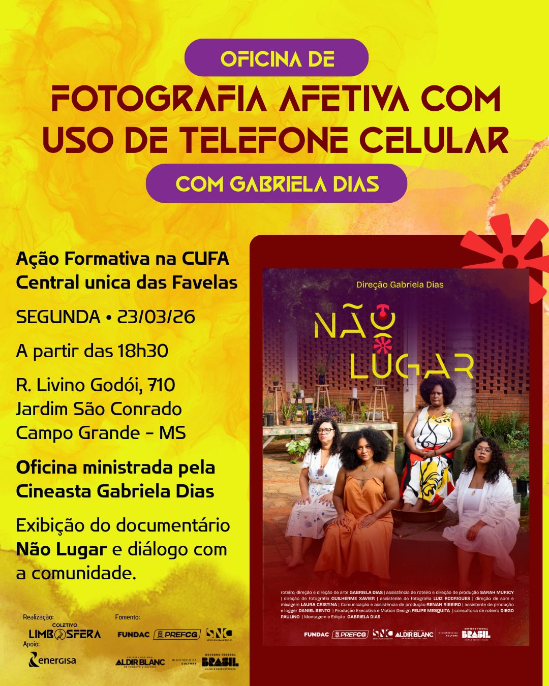 * O quê: Primeira exibição pública do documentário “Não Lugar” + curso “Fotografia Afetiva” + diálogo com a comunidade;