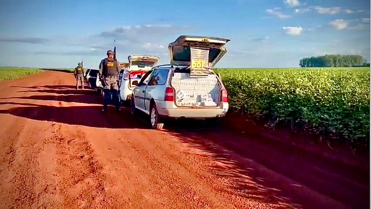 Policiais militares do DOF (Departamento de Operações de Fronteira) apreenderam, nesta quarta-feira (8), em Maracaju, três veículos carregados com aproximadamente 3.400 pacotes de cigarros contrabandeados do Paraguai. Na ação, quatro homens, de 20, 22, 30 e 50 anos, foram presos.