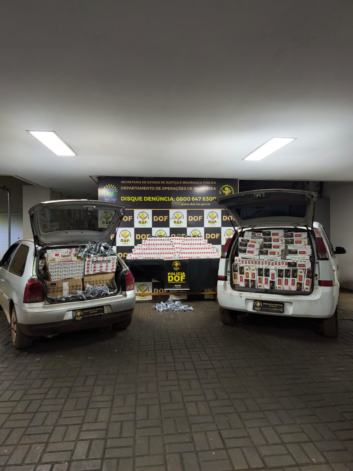 Os carros GM Meriva e VW Gol estavam carregados com cigarros de origem paraguaia e, em um dos cômodos, foram localizados mais fardos de cigarro e materiais de descaminho. Os ocupantes da casa fugiram antes da abordagem e não foram localizados.