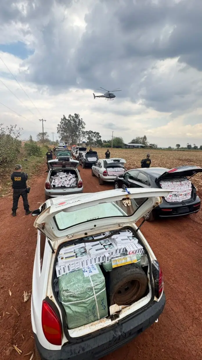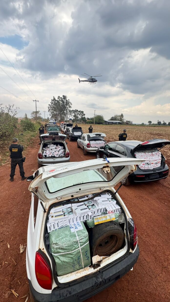 Com o apoio de uma segunda equipe do Departamento, do helicóptero Harpia do DOF e policiais da CGPA (Coordenadoria Geral de Policiamento Aéreo), outros sete veículos foram encontrados em um canavial próximo, onde cinco pessoas também foram detidas.