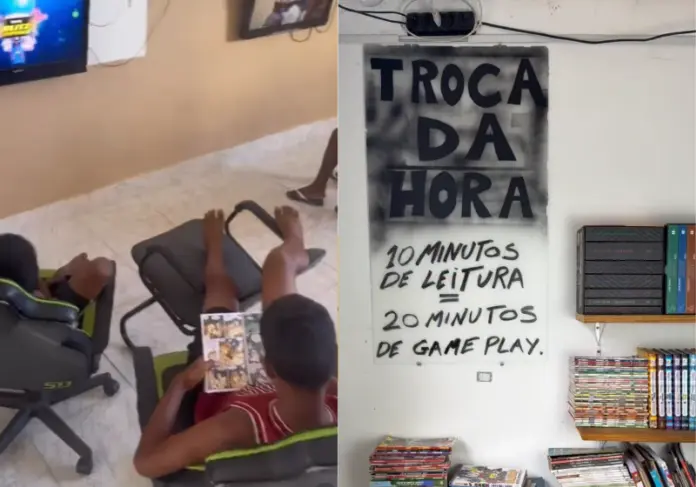 Olha que ideia maravilhosa! O William Santos é dono de uma lan house e passou a usar o comércio dele para criar crianças de uma forma simples. A cada 10 minutos de leitura, as crianças ganham o direito de jogar por 20 minutos sem pagar nada.