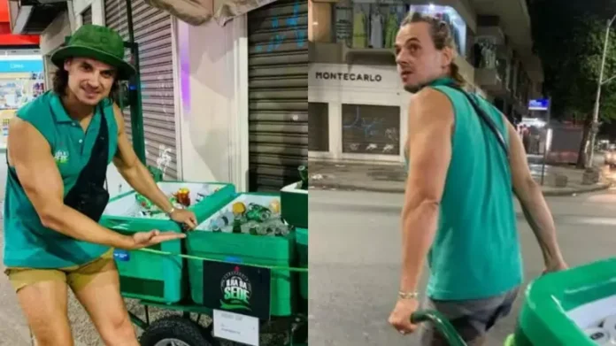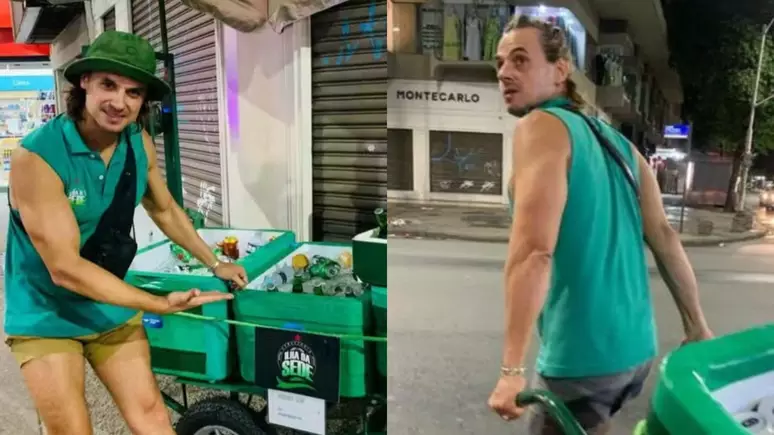 Daniel Erthal não foge de trabalho nem mesmo no último dia do ano. O ex-galã de Malhação voltará a vender bebidas alcoólicas durante o réveillon de Copacabana, no Rio de Janeiro, onde mora. O novo ofício do ator viralizou na virada de 2024, quando ele foi flagrado atuando como ambulante na Zona Sul da capital fluminense.