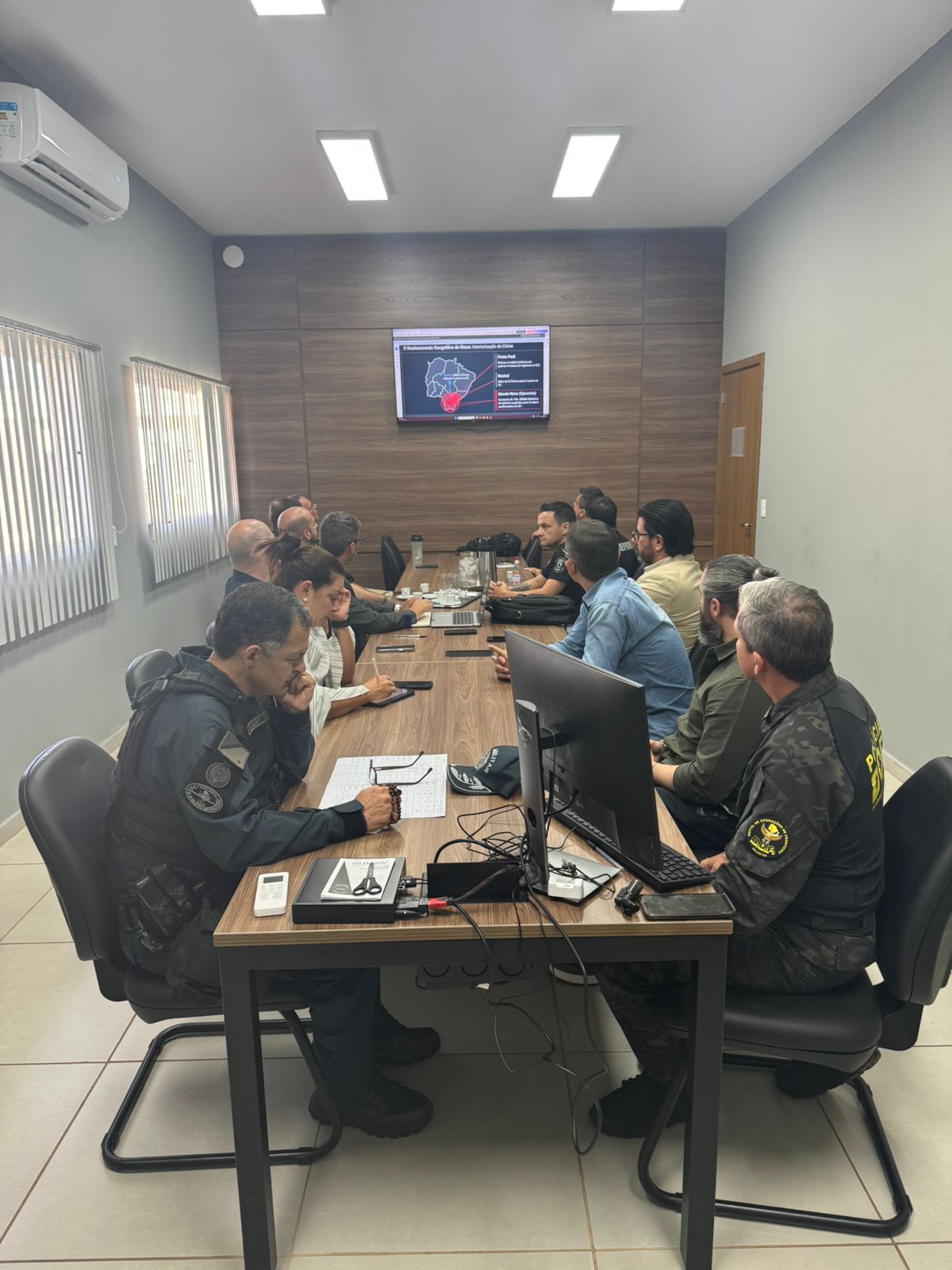 O encontro reuniu representantes da Polícia Militar, Polícia Civil, DOF, Polícia Rodoviária Federal e da Sejusp (Secretaria de Estado de Justiça e Segurança Pública).
