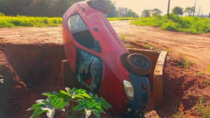 Um veículo GM/Celta de cor vermelha foi encontrado em uma canaleta de águas pluviais na rodovia MS-134, próximo à entrada do Jardim Tropical, em Nova Andradina, entre a noite de domingo (2) e a madrugada desta segunda-feira (3).