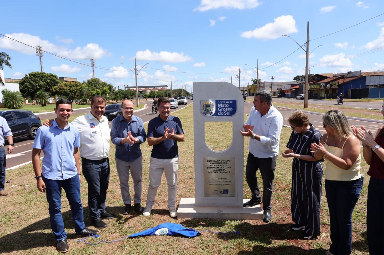 O Governo de Mato Grosso do Sul entregou oficialmente, na tarde deste sábado (20), as obras de pavimentação asfáltica, drenagem, restauração de pavimento, ciclovia e sinalização viária da Avenida Coronel Ponciano, uma das principais vias de Dourados. A solenidade, com descerramento de placa inaugural, ocorreu no canteiro central da avenida, em frente à Prefeitura Municipal.