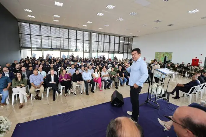 A Prefeitura de Dourados comemorou nesta segunda-feira (15) os 30 anos de criação da Guarda Municipal em uma solenidade marcada por emoção, reconhecimento e reforço do compromisso com a segurança pública. O evento foi realizado no Centro de Convenções Antônio Tonanni, no Parque Alvorada, e reuniu o prefeito Marçal Filho, o vice-governador José Carlos Barbosa, o Barbosinha, vereadores e representantes de diversas forças de segurança.