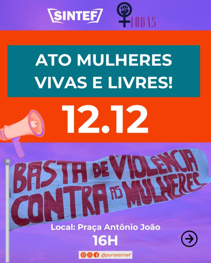 Organizado pelo Sindicato dos Trabalhadores em Educação das Instituições Federais (SINTEF), por meio do GT TODAS, em conjunto com a Frente Feminista, coletivos, organizações, partidos políticos, sindicatos, movimentos e militantes independentes das mulheres da Grande Dourados, o Ato Mulheres Vivas e Livres integra a mobilização nacional que aconteceu no fim de semana em diversas cidades do país como resposta à escalada da violência de gênero. Em razão do feriado municipal no dia 8 de dezembro, a manifestação em Dourados foi marcada para esta sexta-feira, dia 12, reforçando a urgência de enfrentar o feminicídio e fortalecer políticas públicas que assegurem que todas as mulheres possam viver livres de violência e com seus direitos respeitados.