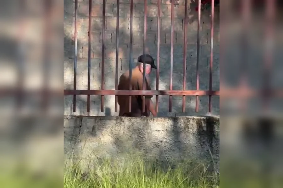 As imagens foram gravadas em abril de 2025 por câmeras de segurança próximas. No primeiro trecho, o suspeito grita, em tom de ameaça: “Vamos embora para a guerra”. Depois, fala em “dar um tiro”. O caso aconteceu no Distrito Federal.