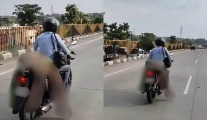 Um homem foi flagrado carregando a esposa morta amarrada na garupa de uma motocicleta em uma rodovia, e repercutiu nas redes sociais.