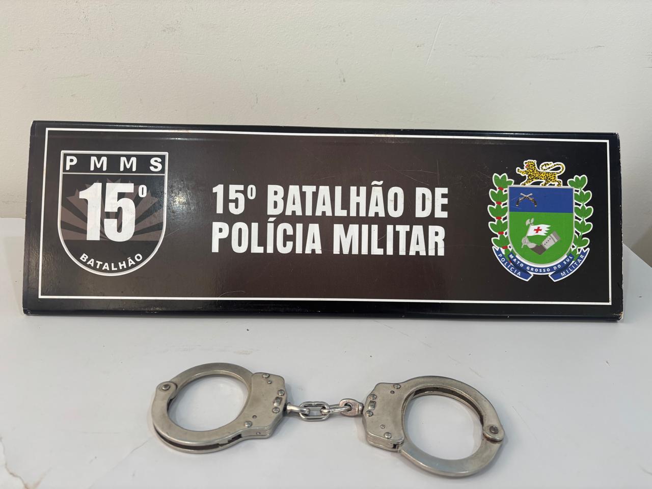 O autor foi cientificado da ordem de prisão e não apresentou resistência à condução, sendo encaminhado à Delegacia de Polícia Civil para as providências legais cabíveis, sem a necessidade do uso de algemas.