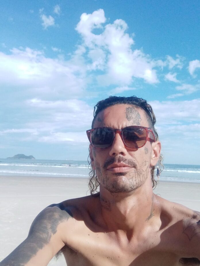 Vitor trajava moletom preto, camiseta do Corinthians e uma camisa florida.