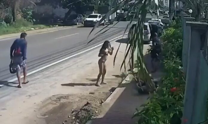 Câmeras de segurança registraram o momento em que o homem, um turista do Paraná, estava andando pela calçada, quando dois criminosos saem de um veículo, que estava estacionado, e atiram nas costas da vítima.