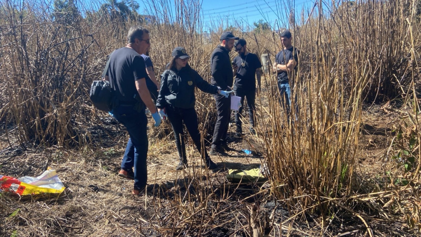 Os peritos já retiraram o corpo da terra. No local, há indícios de que a mata foi queimada, mas ainda não se sabe se tem relação com o crime.