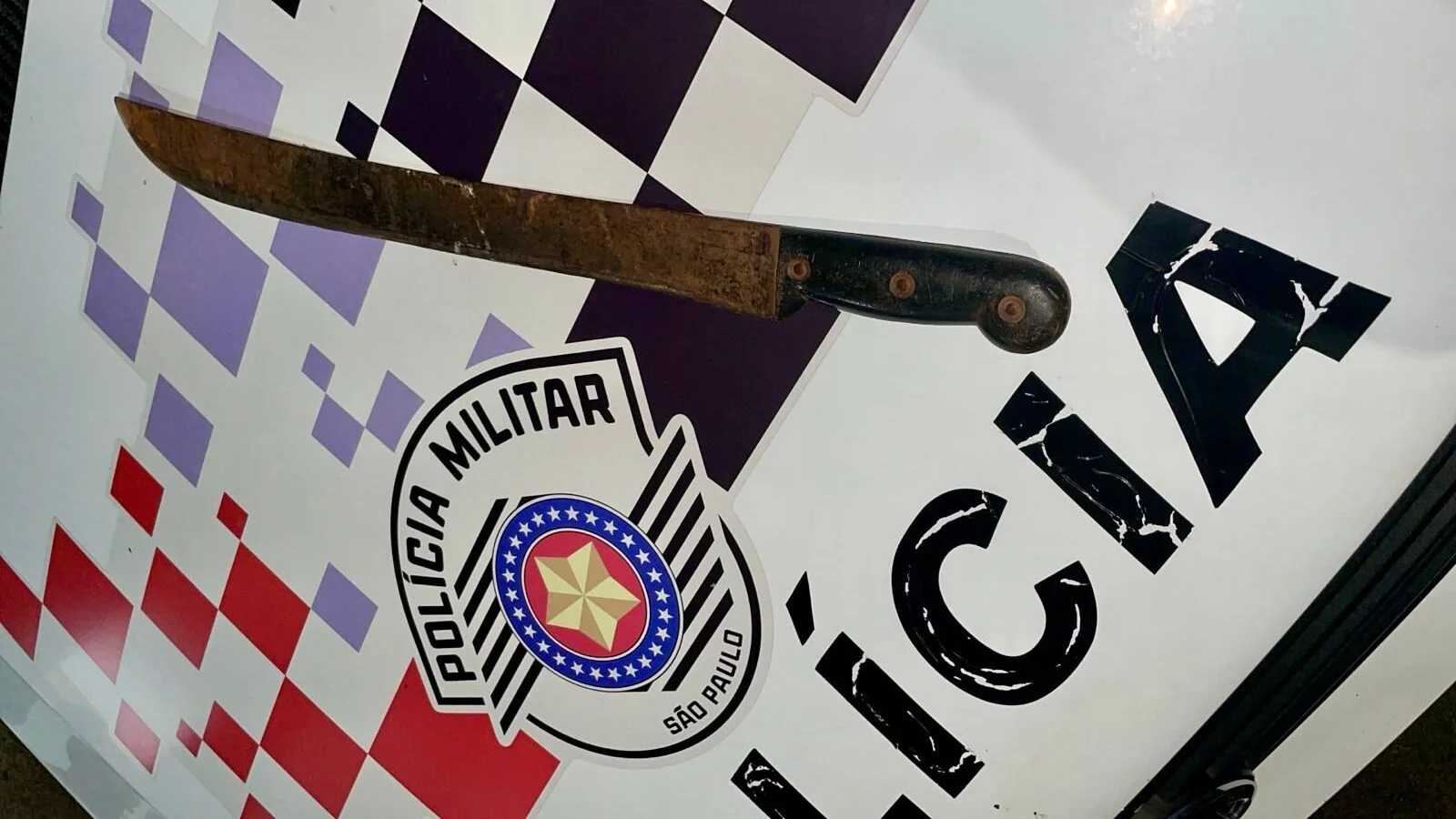 Em relato à PM, a mulher afirmou que o irmão chegou alterado, pegou um facão e passou a ameaçar as crianças e o cunhado. Segundo a vítima, o homem arrastava a lâmina pelo chão e chegou a golpeá-la contra a parede, quase atingindo o marido dela. O facão foi localizado posteriormente próximo ao portão da residência.