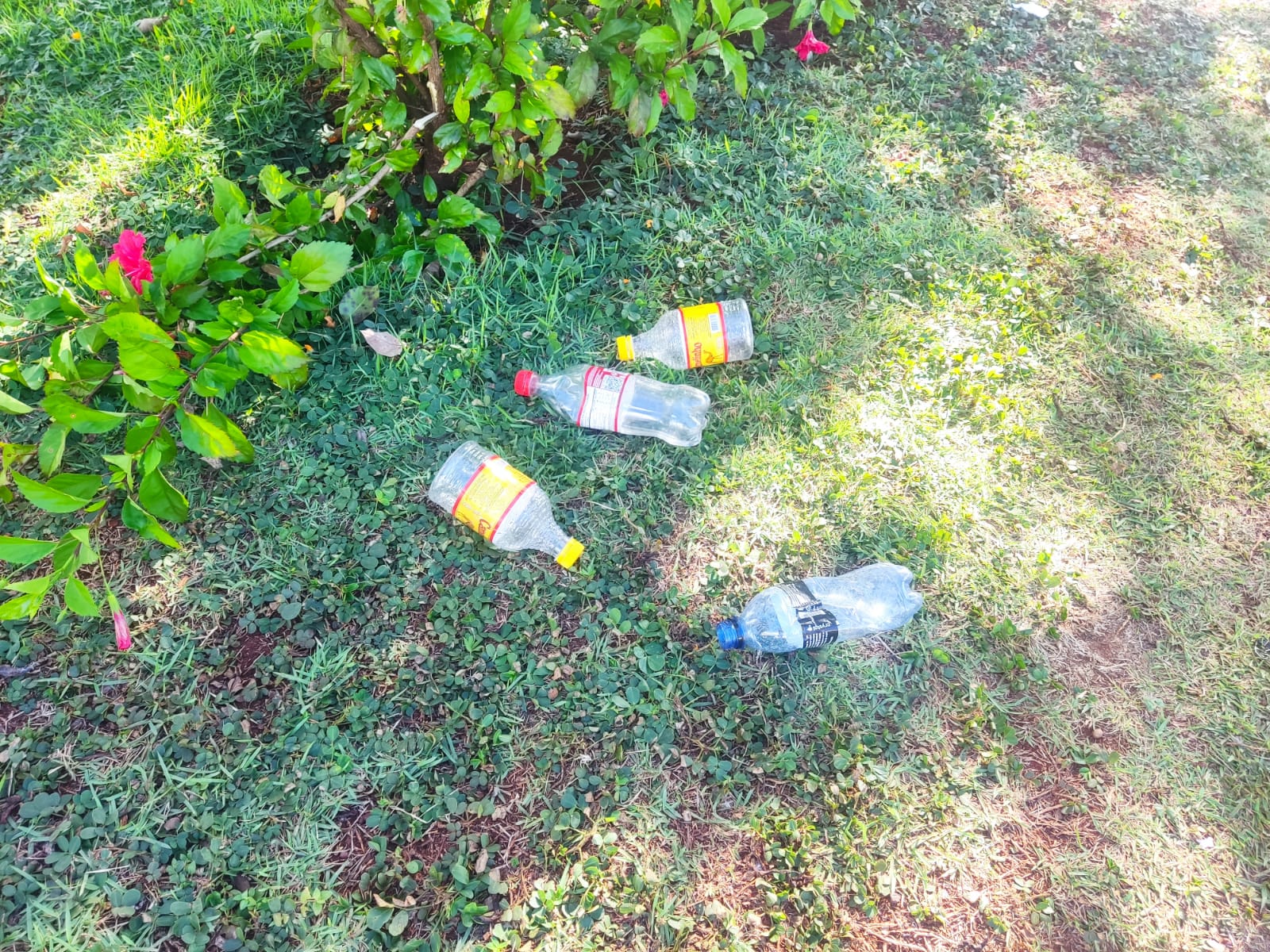Ao chegar nas proximidades de onde são montadas as barracas da feira na praça, os policiais localizaram um homem com as características informadas. No local, foi constatado que diversas plantas ornamentais estavam destruídas ou danificadas, além de grande quantidade de resíduos sólidos espalhados pelo espaço público, como latas metálicas de refrigerante, copos e sacolas plásticas, bitucas de cigarro, garrafas de bebidas alcoólicas, objetos domésticos inutilizados, entre outros detritos.
