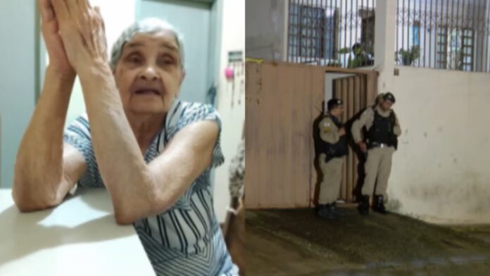 Nas buscas pelo interior da casa, os policiais encontraram um cão morto. Ao tentarem acessar um dos quartos, a porta estava bloqueada. Após forçarem a entrada, localizaram o corpo da idosa, com marcas de agressão, e também o adolescente, que estava ferido e inconsciente. A perícia indica que a morte da mulher foi causada por pauladas, embora o objeto utilizado não tenha sido encontrado. O adolescente também foi agredido a pauladas.