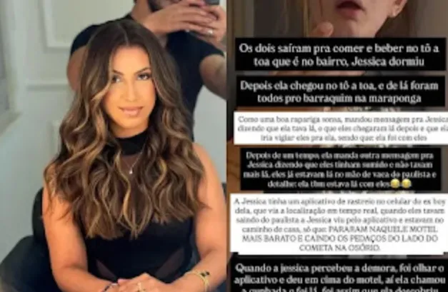 Segundo o relato de Jéssica publicado em suas redes, ela e a cunhada, Nathielly, já desconfiavam de uma possível traição, mas acreditavam que cada um estivesse em suítes separadas. No entanto, ao chegarem ao local, teriam encontrado os três dentro do mesmo quarto, situação que a influenciadora classificou como uma “traição em dose tripla”.