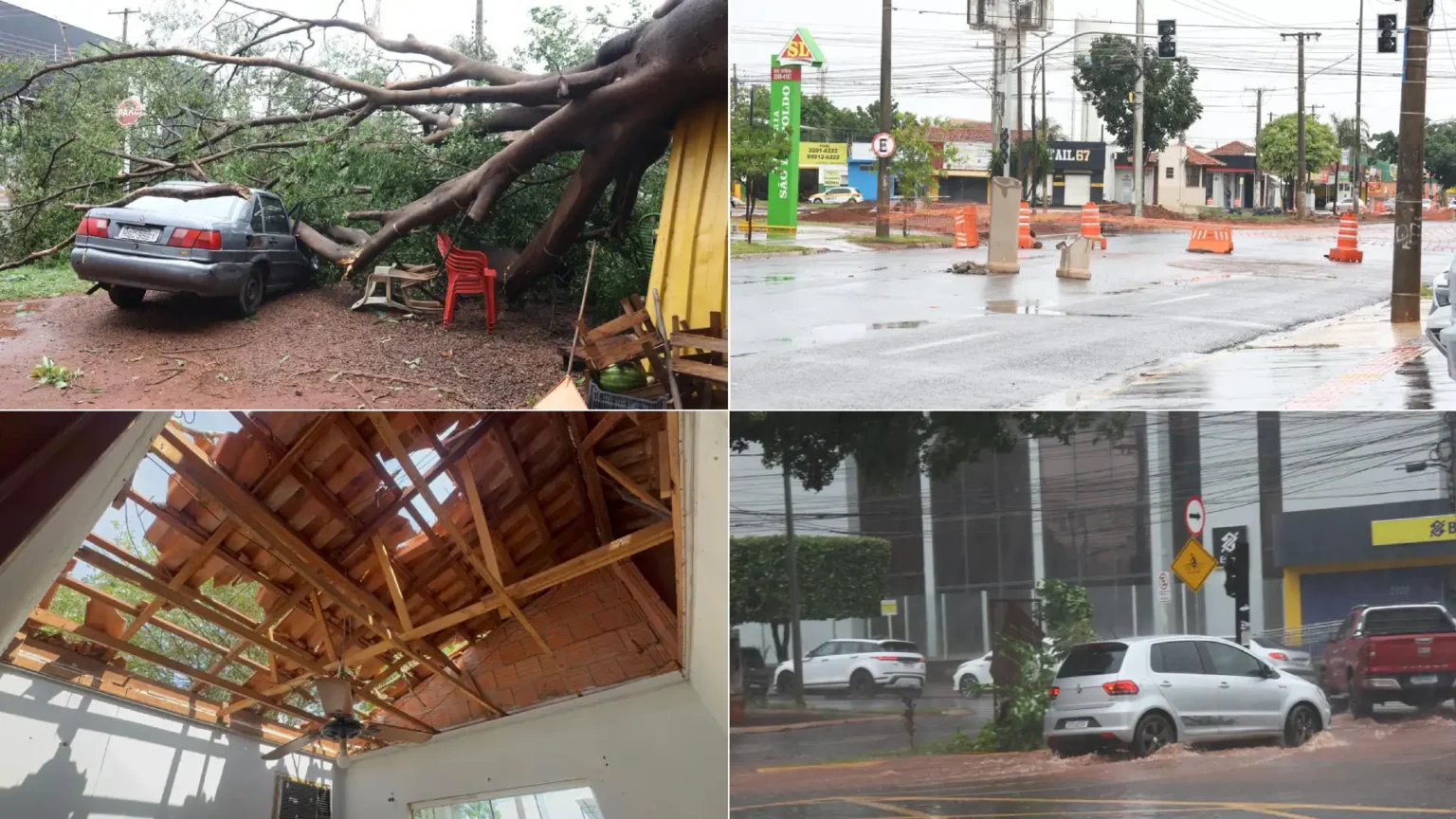 Em vários bairros, moradores enfrentaram falta de energia, grande parte causada por quedas de árvores. No Jardim das Nações, uma árvore de grande porte caiu sobre uma casa, deixando uma família desalojada. Em outro ponto da cidade, um morador do Recanto dos Rouxinóis teve o carro atingido por uma árvore.