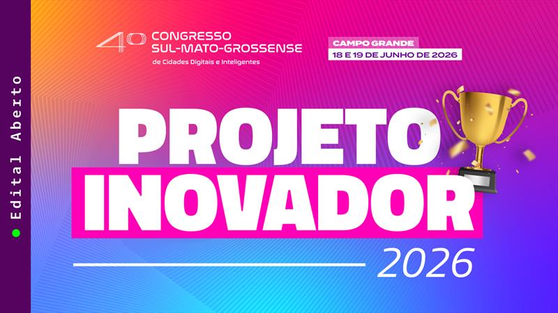 As inscrições para o Prêmio Projeto Inovador 2026 no Mato Grosso do Sul foram prorrogadas até a próxima sexta-feira (24). Municípios do Estado que já implementaram soluções tecnológicas inovadoras na gestão pública podem se inscrever e concorrer ao reconhecimento, que será entregue durante o 4º Congresso Sul-Mato-Grossense de Cidades Digitais e Inteligentes, nos dias 18 e 19 de junho, no Bioparque Pantanal, em Campo Grande.